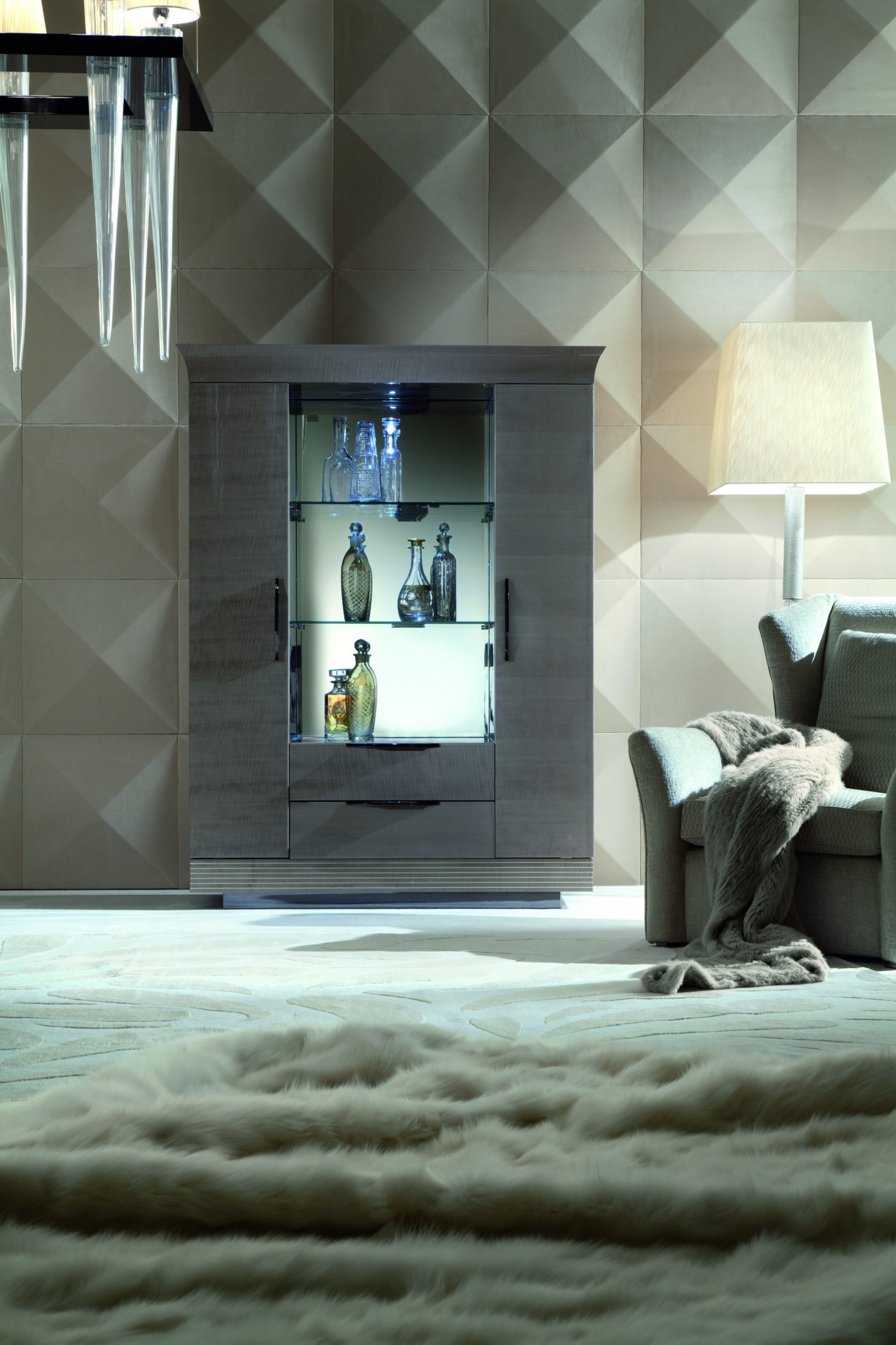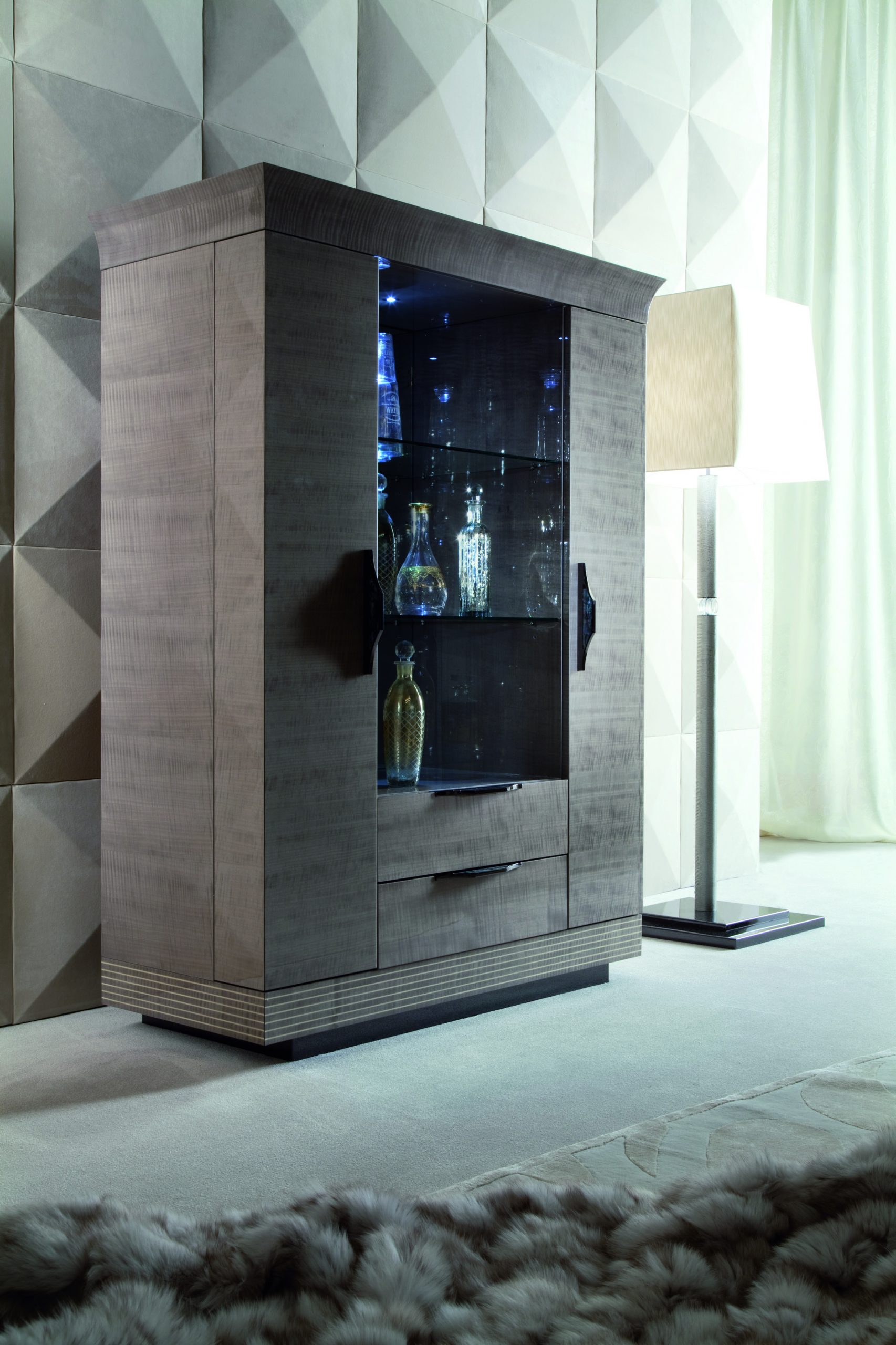 Bar Unit in tiger African sycamore veneer with high gloss polyester finish.
