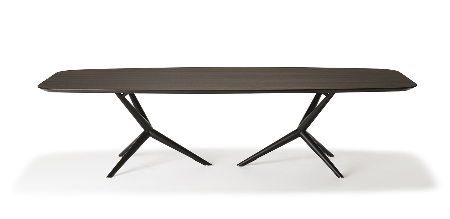 Table with titanium (GFM11), graphite (GFM69) or black (GFM73) embossed lacquered steel base. Feet in black chrome (06).