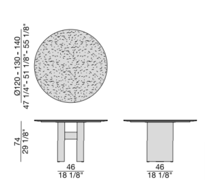 Dining table with two half-moon bases in canaletta walnut joined by a wooden beam. Top in clear glass, wood, marble or Rock. Metal end-feet.