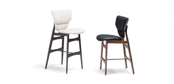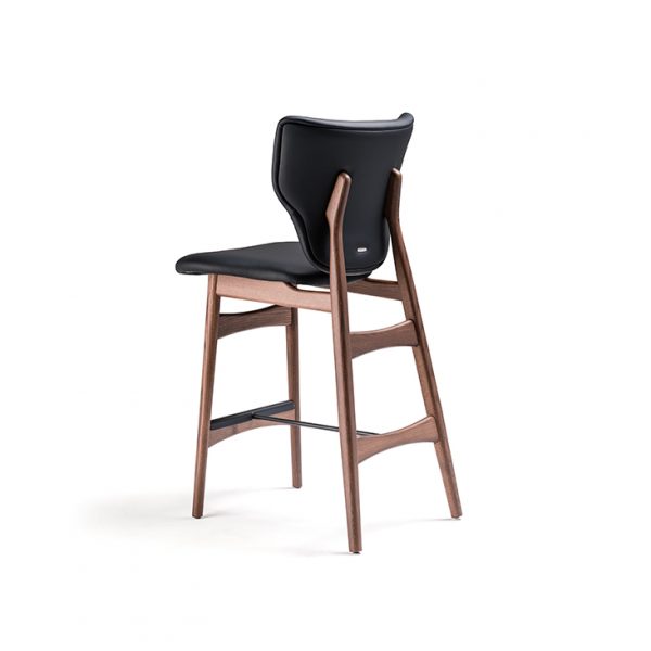Stool with frame in Canaletto walnut stained ashwood (frNC), burned oak stained ashwood (frRB) or open pore matt white (fr71) or black (fr73) painted ashwood. Seat and back upholstered in synthetic leather or soft leather as per sample card.
