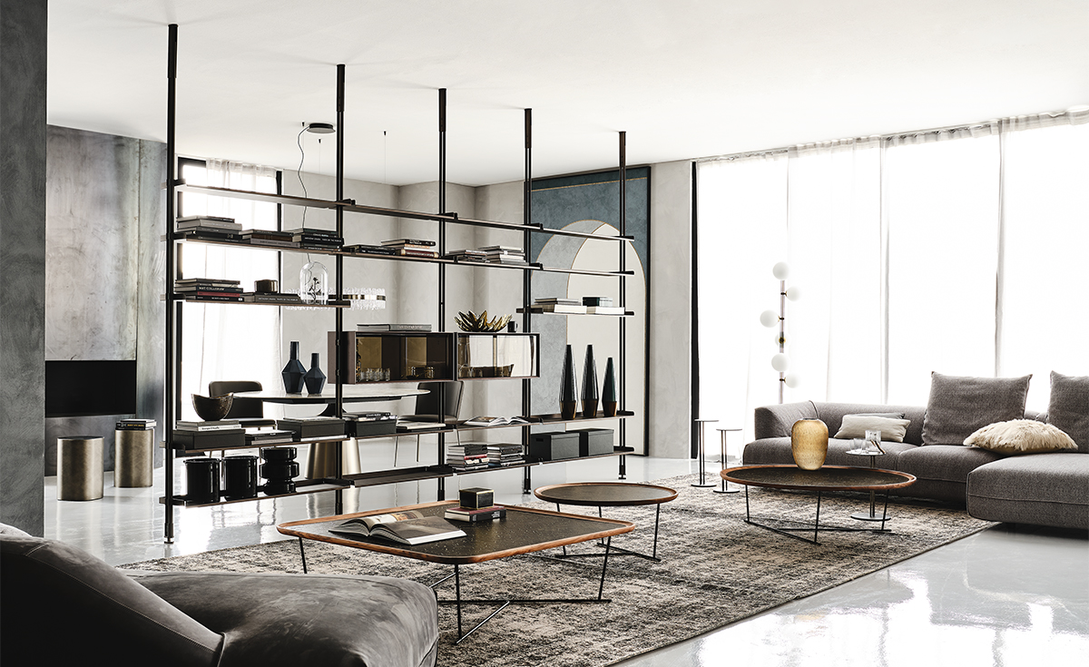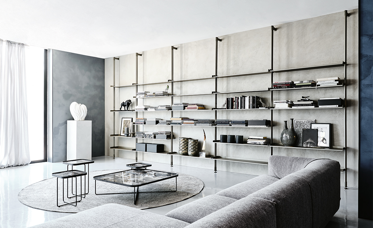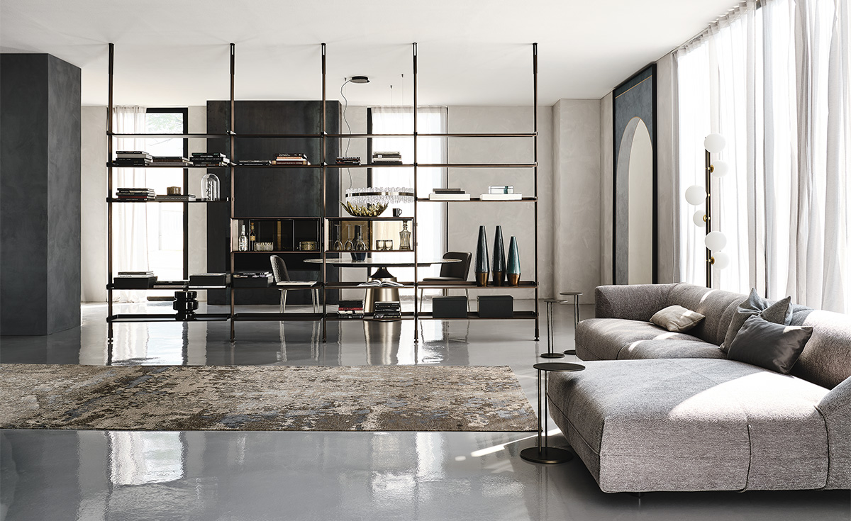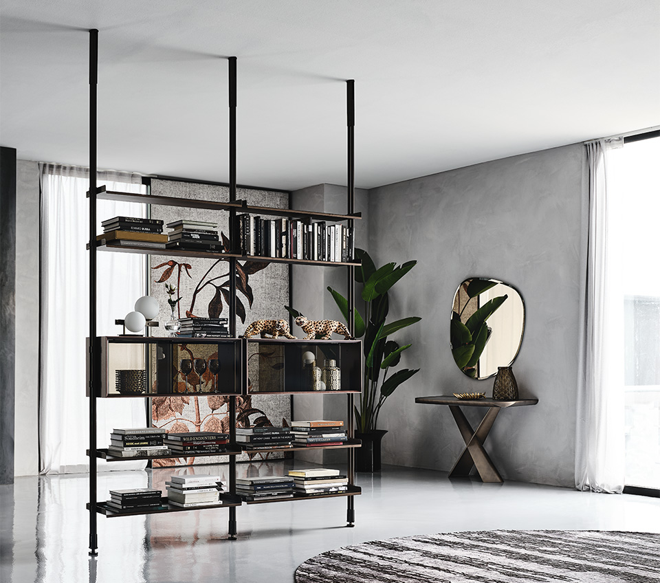 Giorgio Cattelan conceived the original design of Freeway, the metal modular design bookcase that fully expresses the values and style of Cattelan Italia. It is a customizable furniture system that can be placed in the center of the room or against the wall, even in the corner version, thanks to the wall or ceiling mounting. In fact, its modules are perfect as room dividers for an open space, thanks to the design metal shelves and practical boxes. The variable lengths of the shelves and boxes perfectly adapt to any room’s dimension, and allow you to create irregular compositions, following your personal taste. The wide range of finishes comprises the highest quality materials, which turn the Freeway bookcase into a precious and sophisticated piece of furniture.