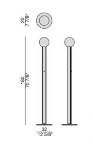 Floor lamp in solid canaletta walnut or ash with metal base in Bronzoro finish and diffuser in white opal shiny glass. Integrated dimmable touch switch.