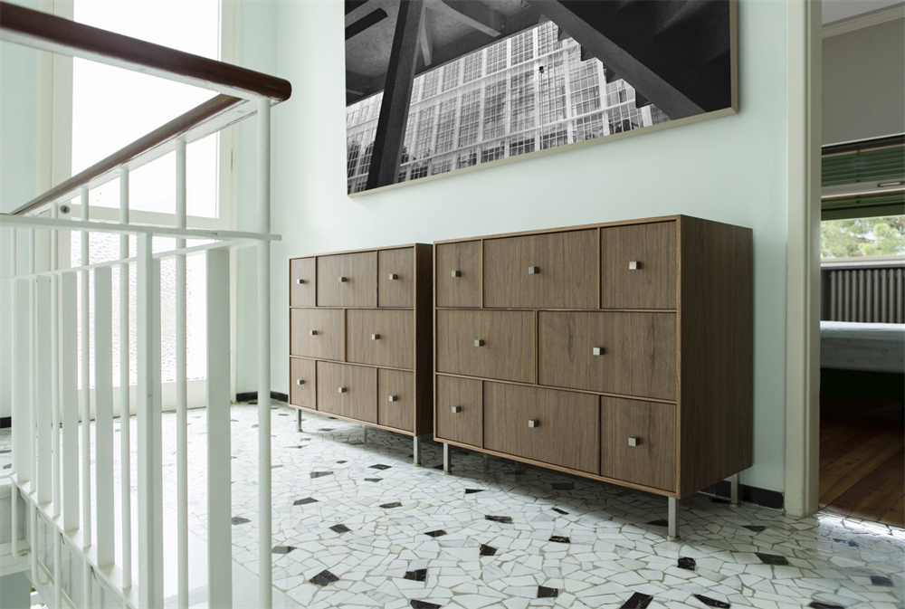 Chest of drawers and night table with frame in solid canaletta walnut.
