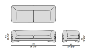 Sofa with four feet in solid canaletta walnut and cover in the fabrics of the collection. The cover in fabric is removable, while the cover in leather is non-removable. Inner structure in poplar plywood and solid fir wood with elastic belts. The padding is in crush-proof polyurethane with different densities. Seat cushions in crush-proof polyurethane foam covered by padding paired with cotton and velveteen fabrics