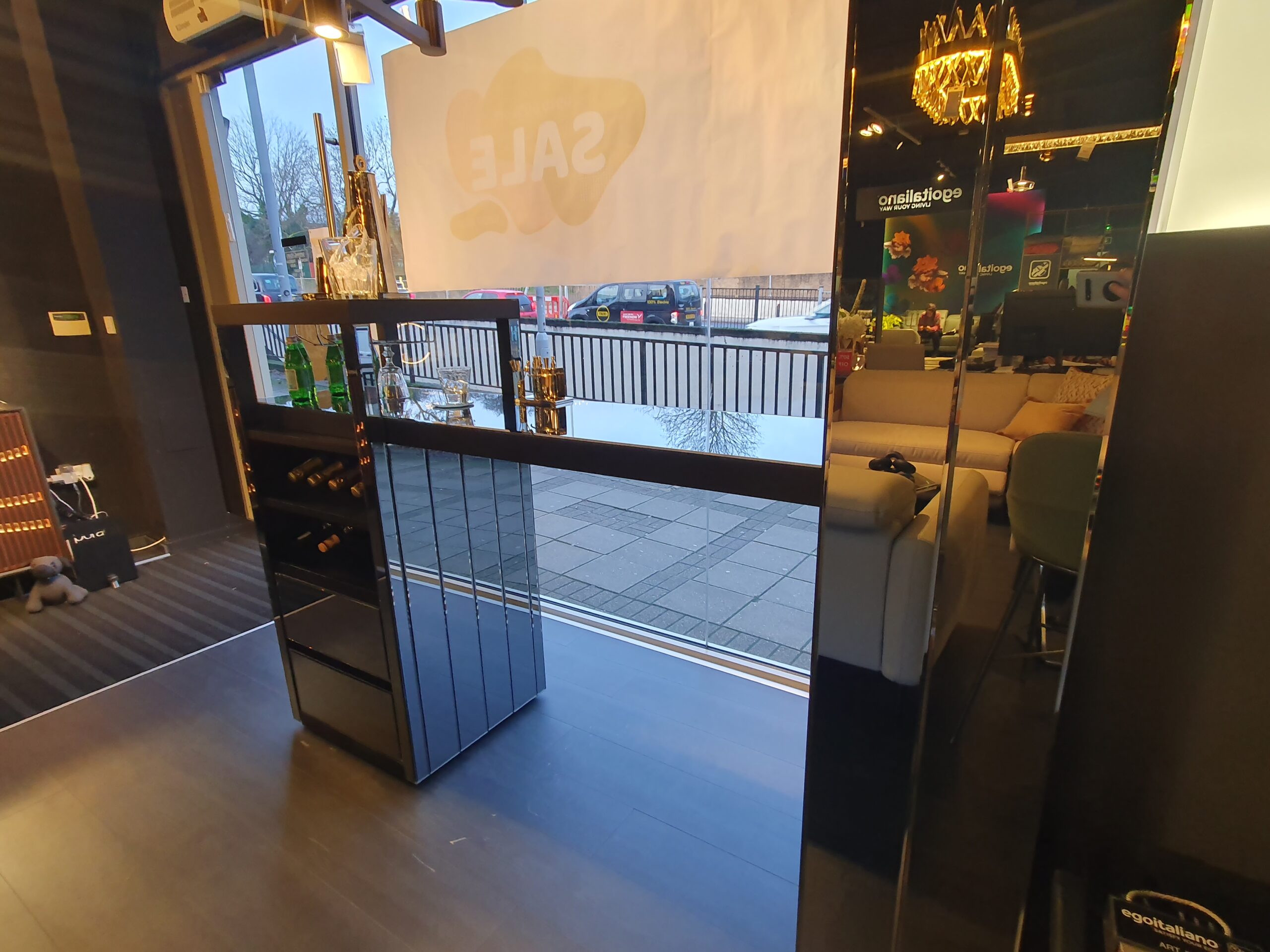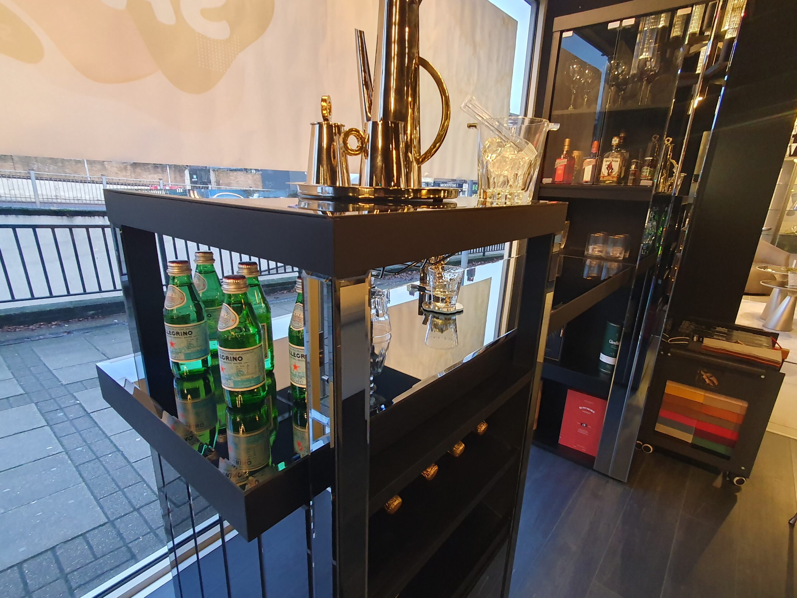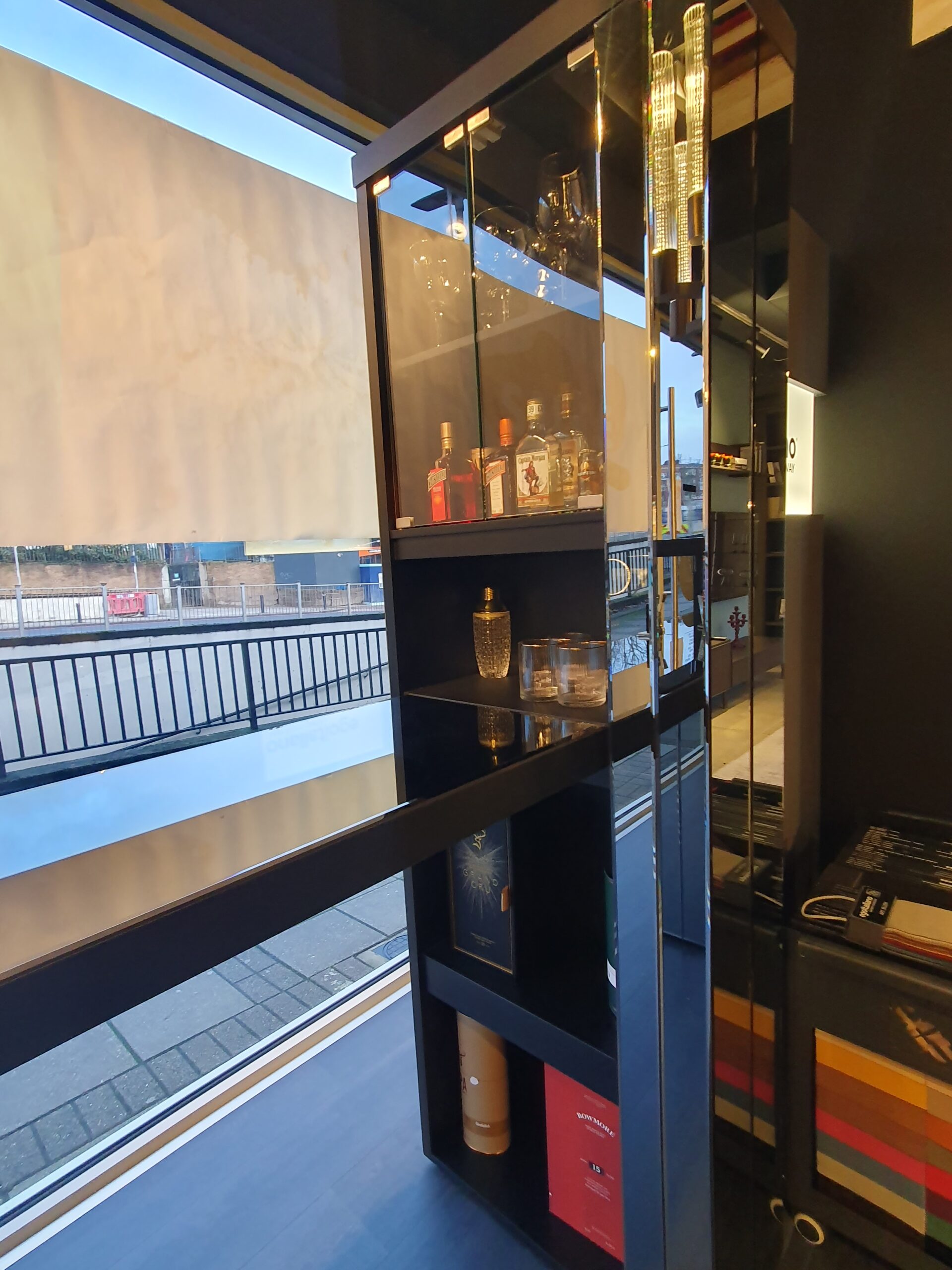 DISPLAYED IN SMOKED GRAY GLASS